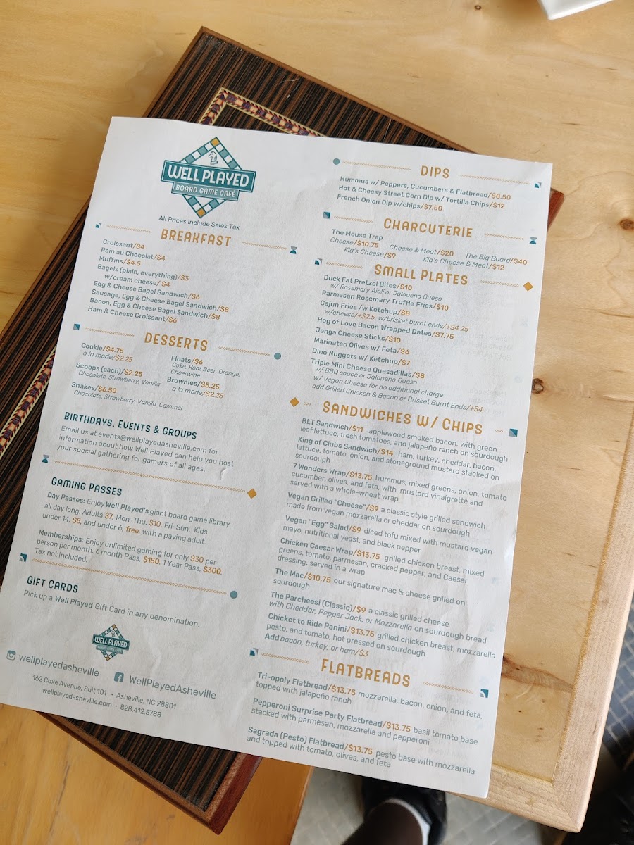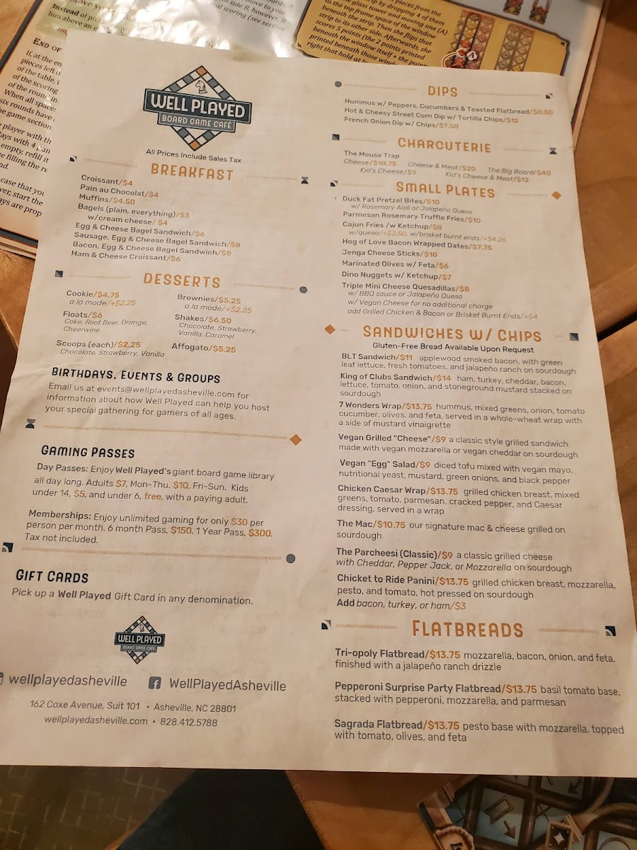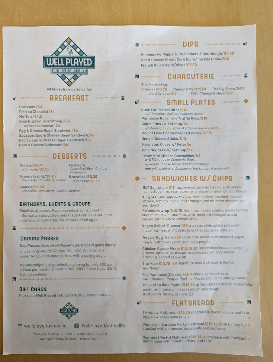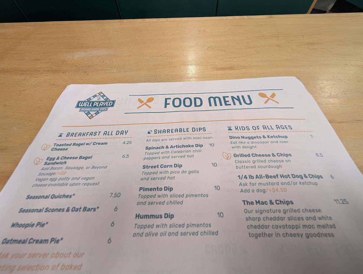 Well Played Board Game Café Menu (Update 2025)