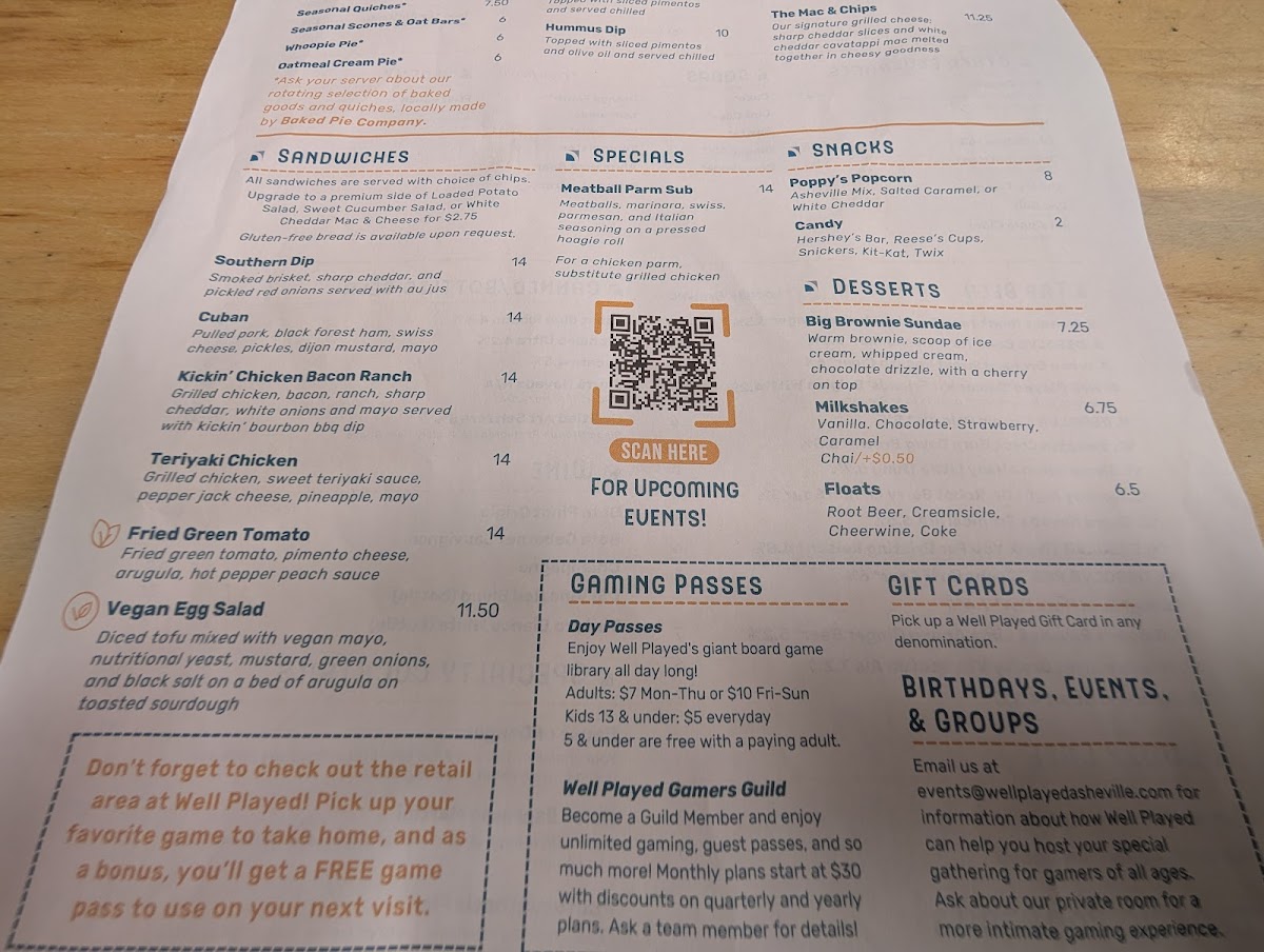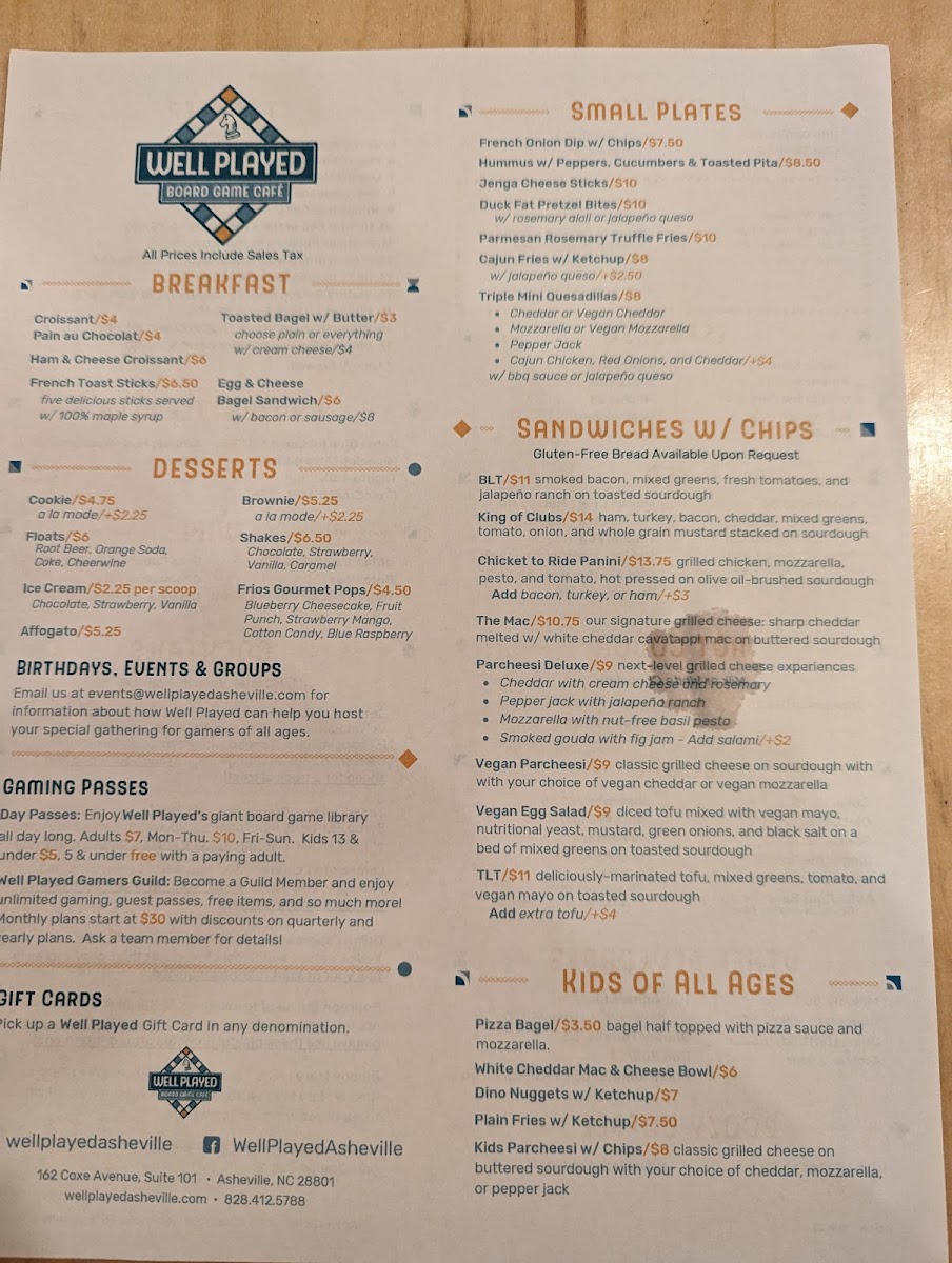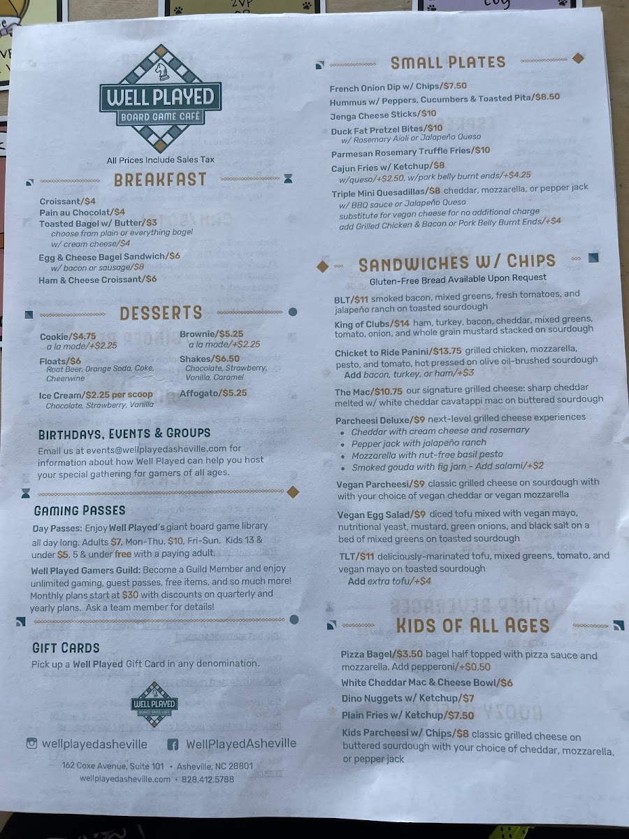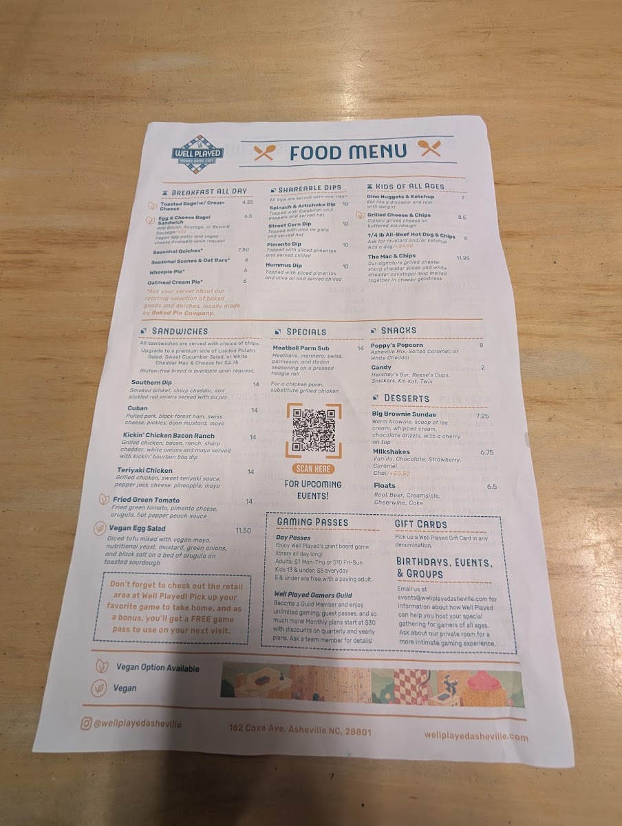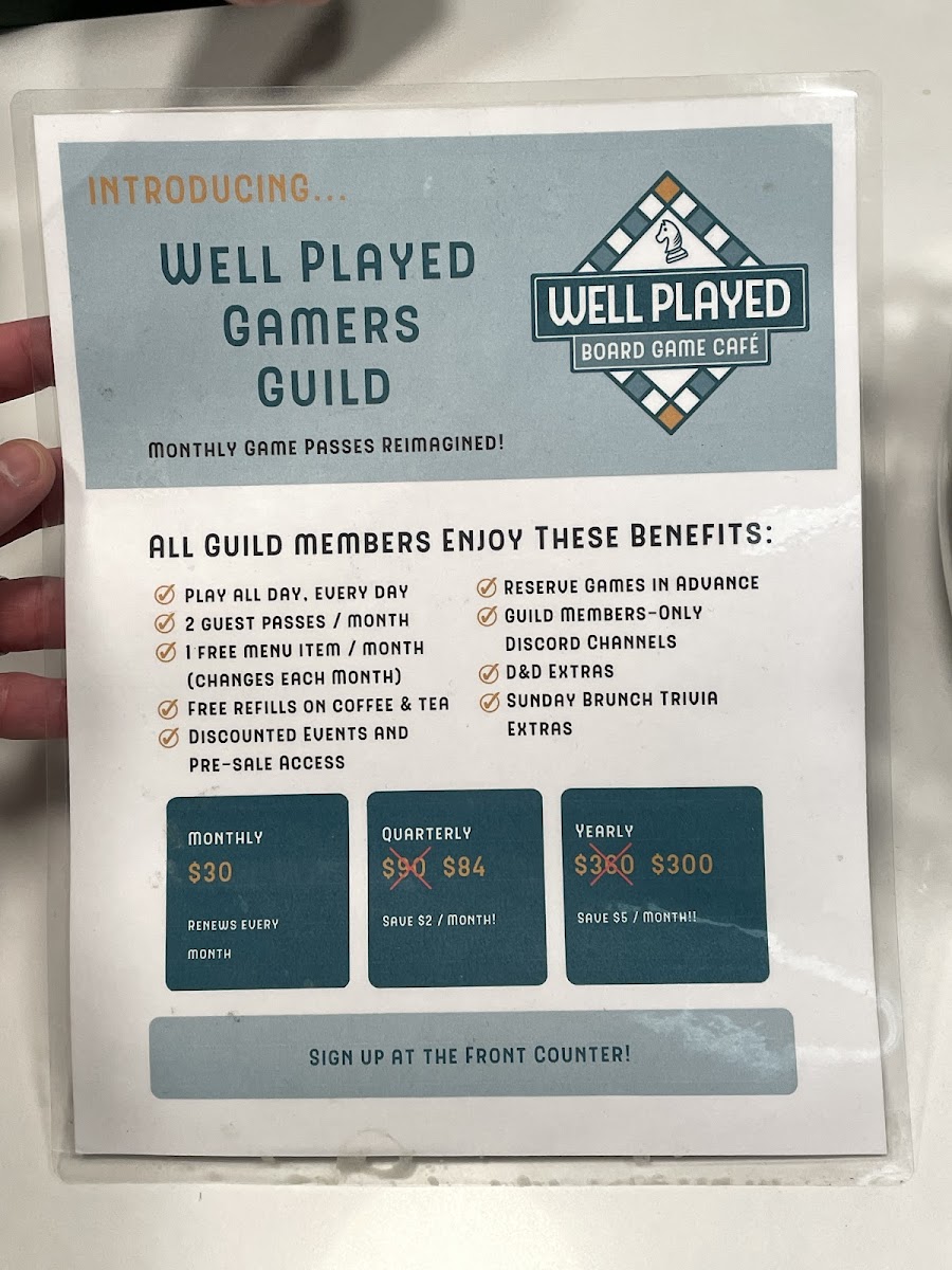 Well Played Board Game Café Menu (Update 2025)